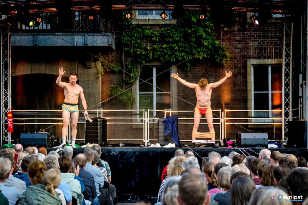 Als erste Haupt-Acts des Abends betraten Benno & Max die Bühne – und brachten sofort Bewegung ins Spiel. Mit einer Mischung aus Artistik, Körpersprache und gut getimtem Slapstick verwandelten sie den Marktplatz in eine Art Zirkusarena. Ihr Humor kommt ohne viele Worte aus, ist aber alles andere als stumm. Jede Geste sitzt, jeder Sturz ist choreografiert, jede Reaktion wirkt spontan.