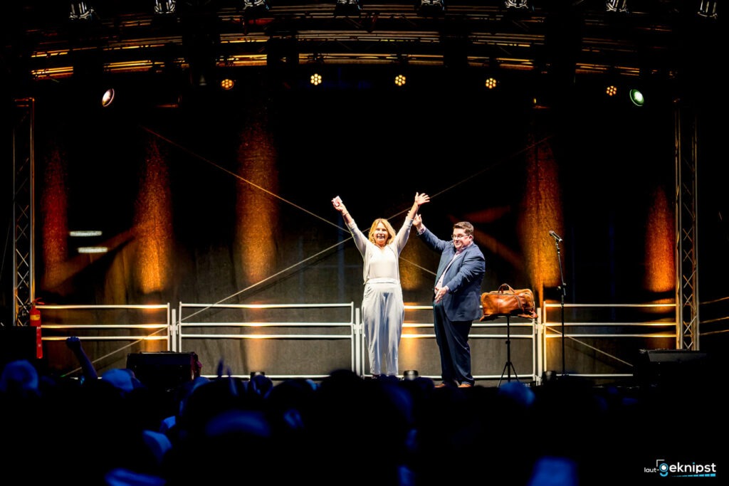 Besonders in Erinnerung bleibt sein improvisierter Moment mit der Reporterin der Dülmener Zeitung, die er kurzerhand für ein exklusives Foto auf die Bühne bat – mit einem Lächeln, ohne Klischee-Keule, ganz auf Augenhöhe. Kein spitzer Kommentar, kein Vorführen, sondern ein echter Sympathiemoment. Witz, Charme, Haltung – ohne unter die Gürtellinie zu zielen. Sein Stil ist kein Angriff, sondern ein Spiegel – einer, in dem man sich plötzlich selbst erkennt. Und dann lacht. Laut.