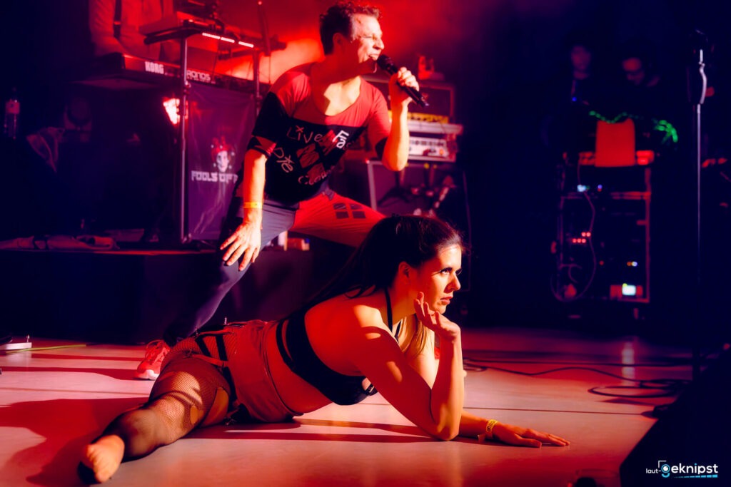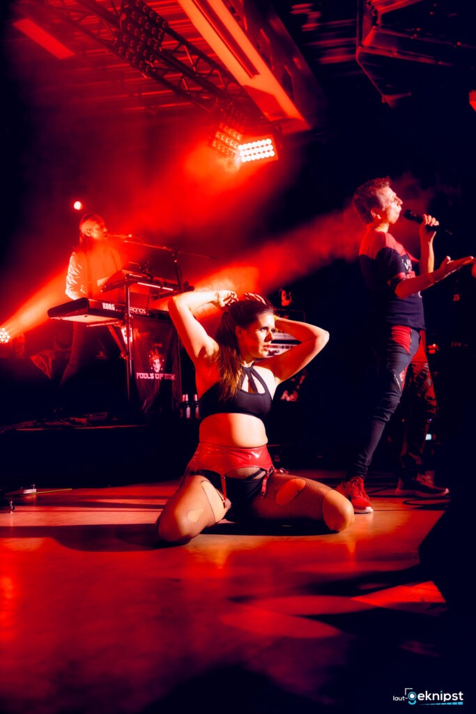 Und was zur Hölle hatte ich da gesehen? Da stand nicht nur Frontmann Micha mit neuer Kurzhaarfrisur(!) – nein, neben den Fools of Rock wirbelten zwei Pooldancerinnen um die Stangen, dass einem Hören und Sehen verging.