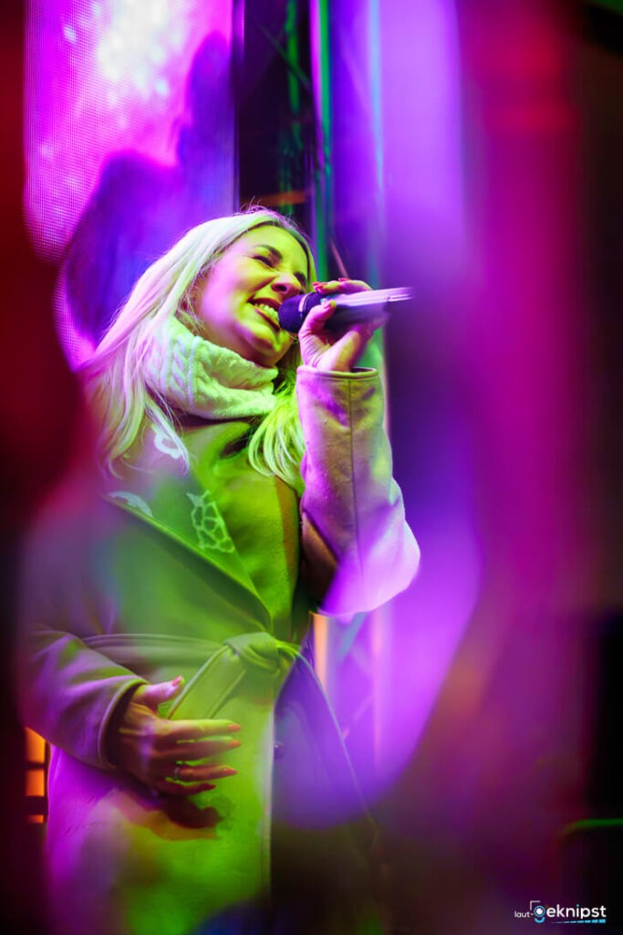 Der Rest war eine bunte Mischung aus typischen Partyschlagern, die genau ihren Zweck erfüllten: Die Leute vor dem Glühweinstand in Bewegung zu bringen und die Kälte zu vertreiben. Und sind wir mal ehrlich: Wenn die Stimmung passt und der Glühwein schmeckt, ist es fast egal, ob da oben komplexe Gitarrenriffs zelebriert werden oder ob Melanie mit ihrer sympathischen Art und Party-Hits den kleinen überdachten Marktplatz rockt.