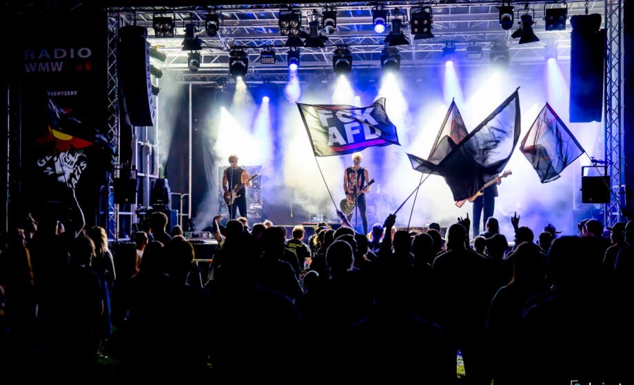 Was sie liefern, ist mehr als Punkrock – es ist Haltung mit Soundtrack. Rogers spielen nicht gegen das Publikum, sondern mit ihm. Und das Publikum gibt alles zurück: Im Moshpit fliegen nicht nur Körper, sondern auch Zeichen. Fahnen werden geschwenkt – von Rogers-Logos bis zu FCK AFD-Bannern. Es ist keine leere Geste, sondern sichtbares Statement. Wer hier feiert, zeigt auch Haltung.