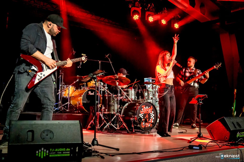 Erster Abriss des Abends: Just A Girl – eine No Doubt Tribute-Band mit so viel Gwen im Blut, dass man kurzzeitig glaubte, der Kalender hätte sich auf 1996 zurückgestellt.