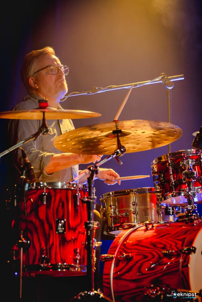 Besonders spannend war die Dynamik in der Rhythmusgruppe. Normalerweise sitzt Jan Wienstroer an den Drums, aber gestern hatten wir die Ehre mit Stephan Sagurna (ihr wisst schon, der Drummer der Sasha-Band). Und holy moly – wie gut haben er und Bassist Markus Bender bitte harmoniert? Bender, der sonst Funk-Legende Nils Landgren den tiefen Ton liefert, hat einen Groove-Teppich ausgerollt, den du so garantiert in keinem schwedischen Möbelhaus findest.